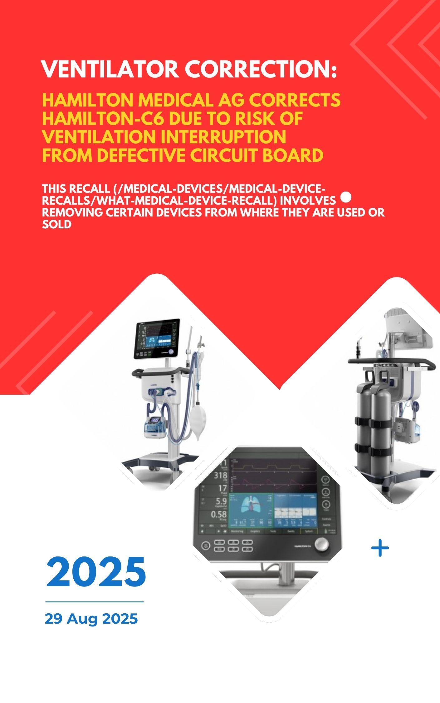 Recall, Ventilator Correction: Hamilton Medical AG Corrects HAMILTON-C6 Due to Risk of Ventilation Interruption from Defective Circuit Board เข้าชมแล้ว : 18